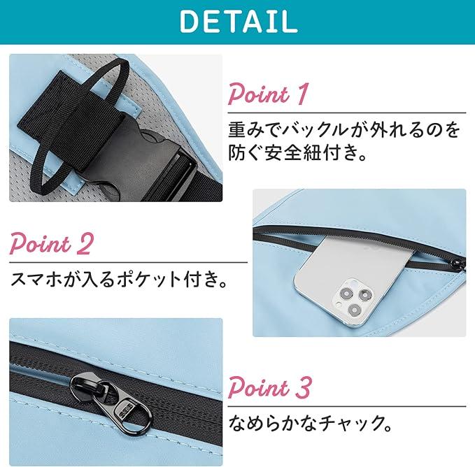 ・おすすめPoint 1 安全紐付きの大きなバックル 重みでバックルが外れるのを防ぐ
